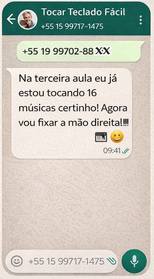 Um curso de teclado totalmente visual, passo a passo, onde você aprende a tocar músicas antigas, famosas e emocionantes, utilizando vídeos claros que mostram exatamente onde colocar os dedos e como montar os acordes.