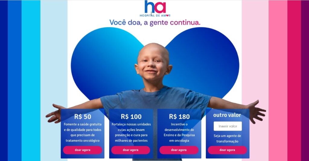 - ✔ Você faz uma doação de R$ 100,00 diretamente ao Hospital de Amor (Barretos/SP).